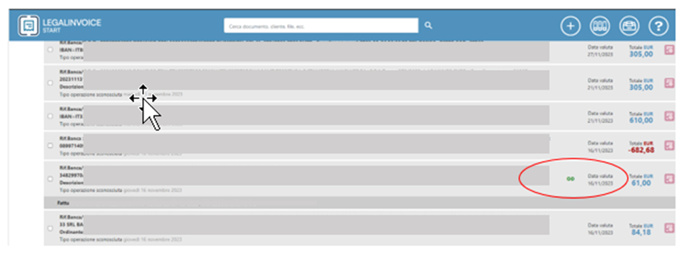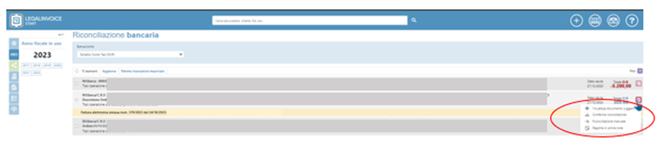 Al termine il documento risulta riconciliato e viene mostrata un’icona verde. È sempre possibile annullare la registrazione attraverso il tasto azioni e la scelta "Annulla riconciliazione".