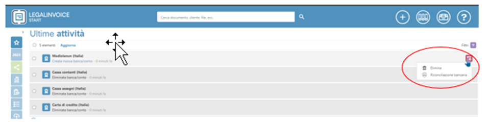 La funzione di riconciliazione bancaria disponibile per Legalinvoice START prevede l’importazione dell’estratto conto e la possibilità di riconciliare i movimenti di incasso e pagamento con le fatture e note di credito attive e passive.