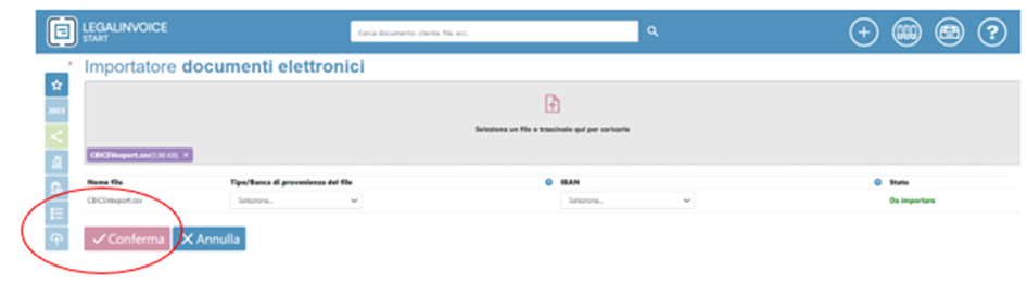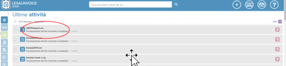 Al termine confermare il caricamento. Nella sezione “Ultime Attività" l’utente verrà avvisato ad importazione completata.