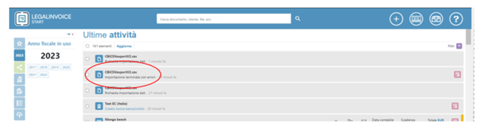 Nel caso in cui l’importazione termini con errori è possibile scaricare il file con i dettagli.