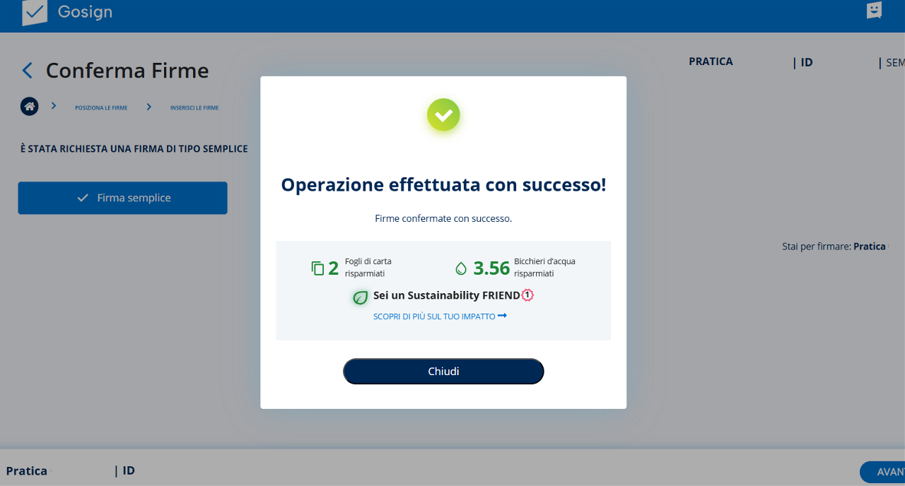 Il buon esito dell’operazione mi sarà confermato a video da un messaggio e il destinatario da me scelto riceverà via mail la pratica firmata.