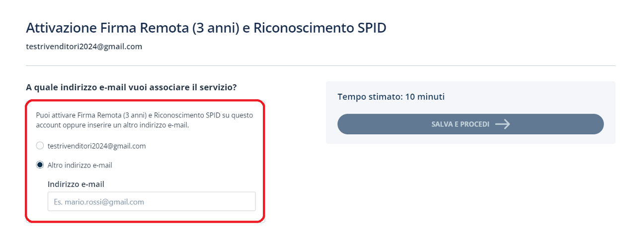 Cliccando sul pulsante "Associa" ti verrà chiesto a schermo a quale indirizzo email vuoi associare il servizio.