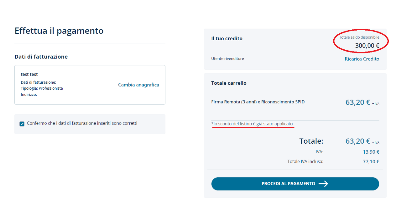 Clicca su "PROCEDI AL PAGAMENTO".