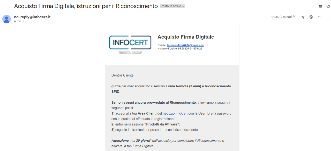 All'interno dell'email trovi le istruzioni necessarie per procedere con l'attivazione del servizio appena acquistato.