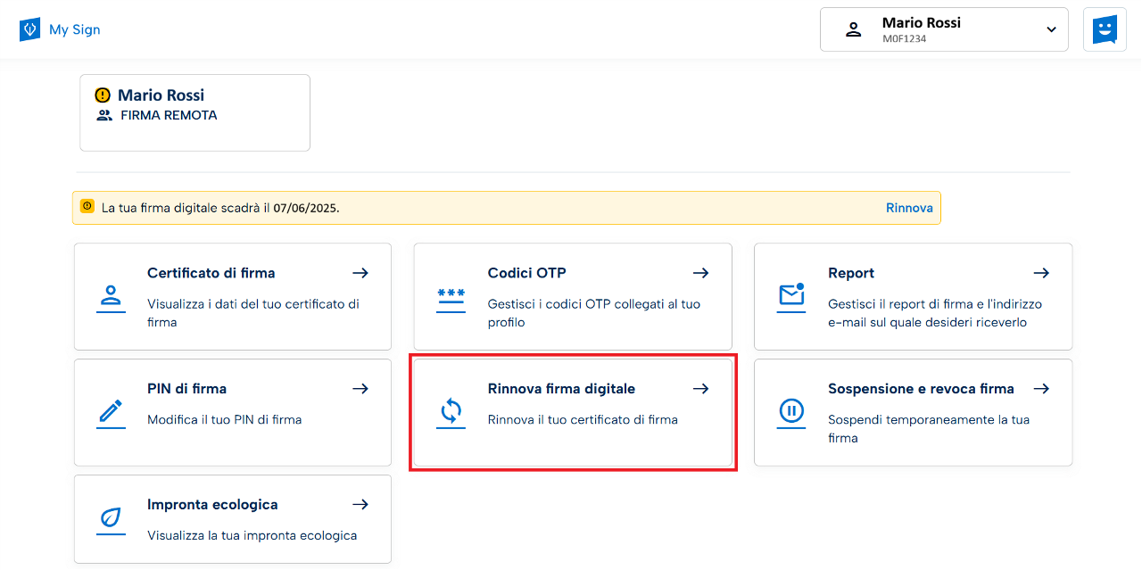 Il portale My Sign confermerà la conclusione del processo di rinnovo.