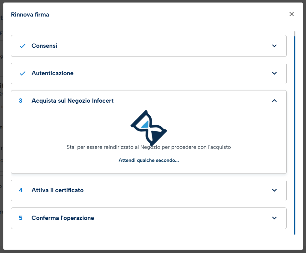 Nel terzo e il quarto caso è necessario prevedere di inserire il bonifico e riprendere l'attività di rinnovo dei certificati in un secondo momento, sempre attraverso un nuovo accesso a My Sign.