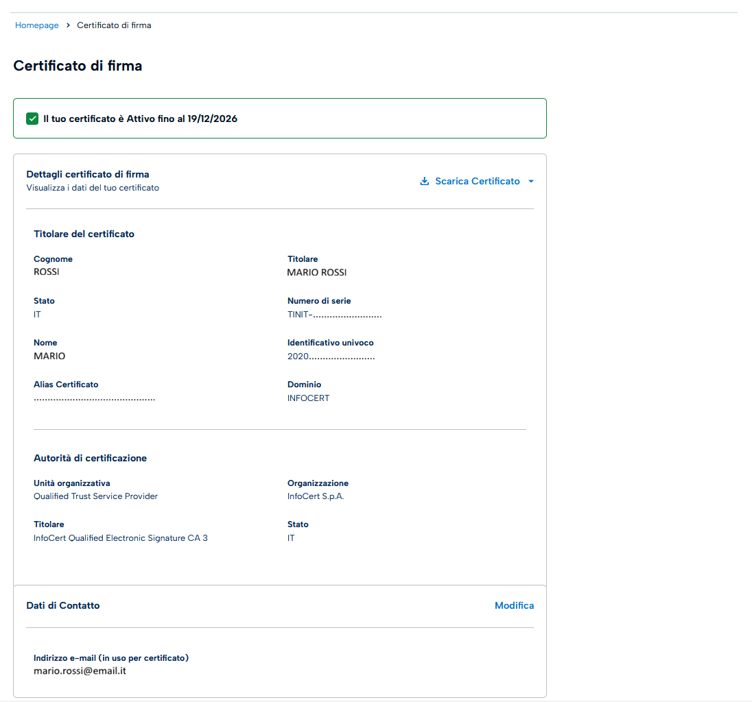 Per verificare che l’operazione sia andata a buon fine non resta che tornare sulla homepage di My Sign.