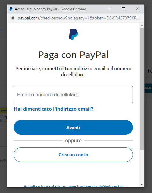 Un clic sul pulsante Procedi al pagamento mette a disposizione la finestra all'interno della quale inserire le credenziali di accesso all’account Paypal.