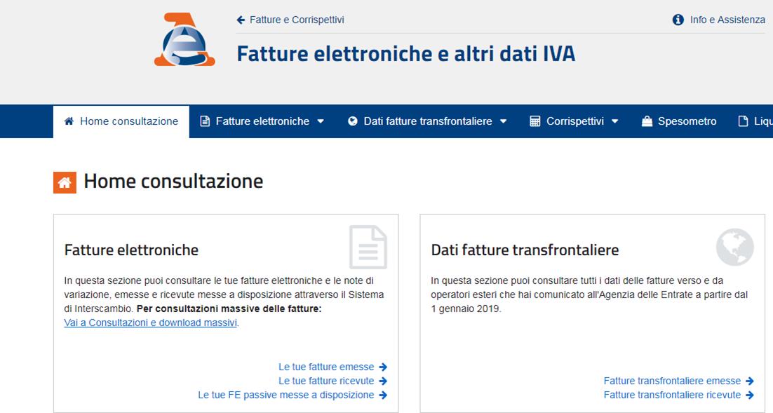 Seleziono la voce Le tue fatture ricevute all’interno della sezione Home consultazione / Fatture elettroniche.
