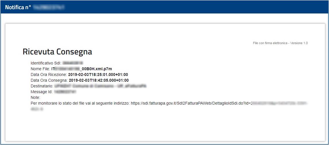 All’interno della Ricevuta di consegna sono presenti le informazioni sull’esito dell’invio.