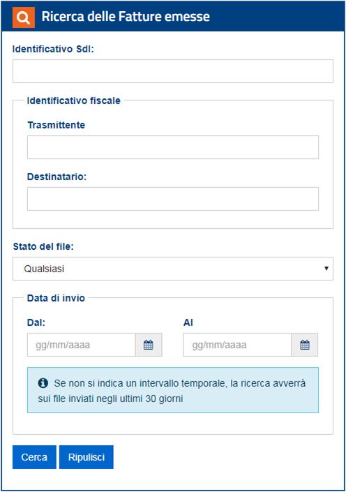 Arrivati a questo punto, non mi resta che inserire i parametri per eseguire la ricerca della/delle fattura/e di interesse e procedere con un clic sul pulsante Cerca posto in basso a sinistra.