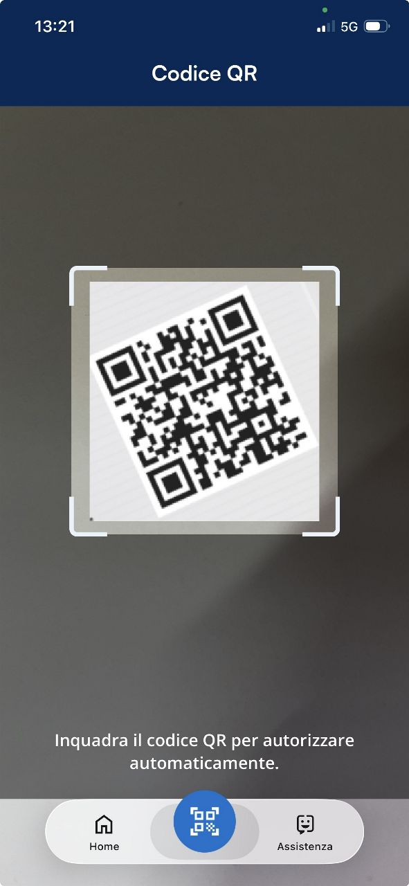 Accedendo all'App utilizzo la funzione "Codice QR" e inquadrerò il codice presente sullo schermo del PC con la fotocamera del mio Smartphone.