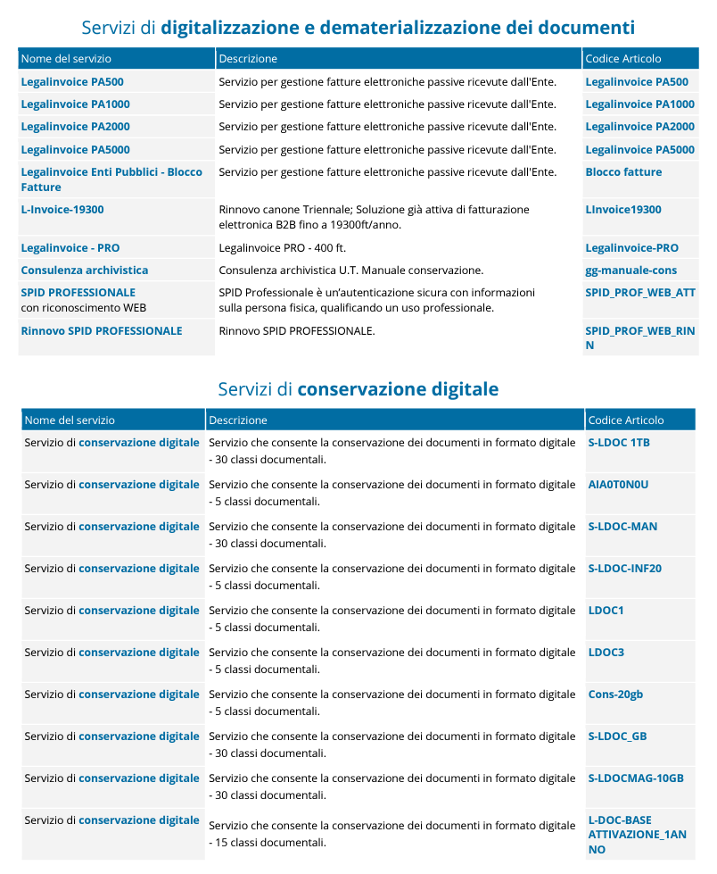 Catalogo MEPA - Tabella dei Codici
