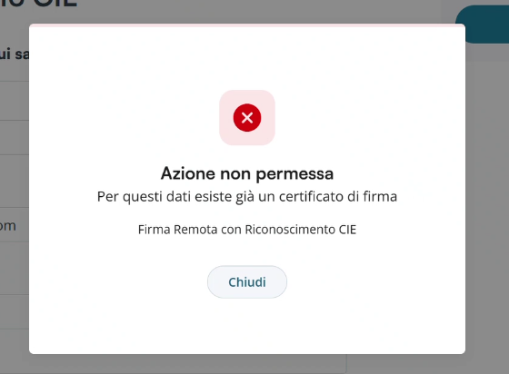 Se il cliente possiede già un Certificato Digitale di Firma attivo associato ad uno dei seguenti dati (e-mail, cellulare) non sarà possibile attivarne un altro sulla propria utenza.