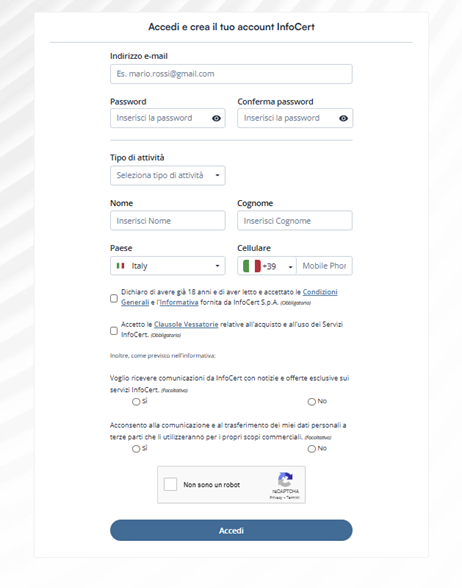 Per la gestione del certificato utilizza le credenziali dell’account Tinexta Infocert utilizzate per registrarti ed acquistare il servizio.