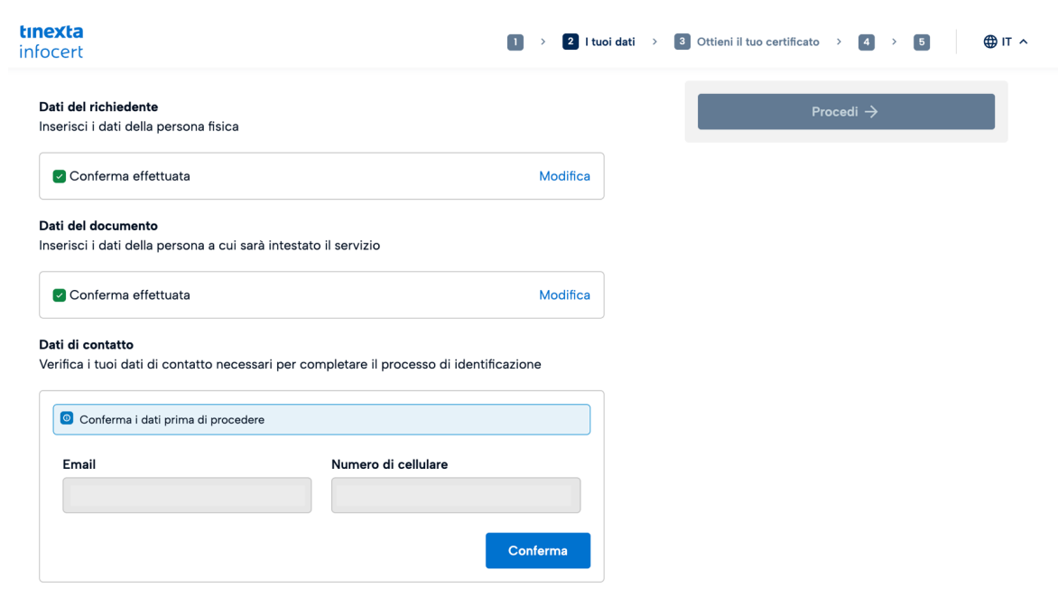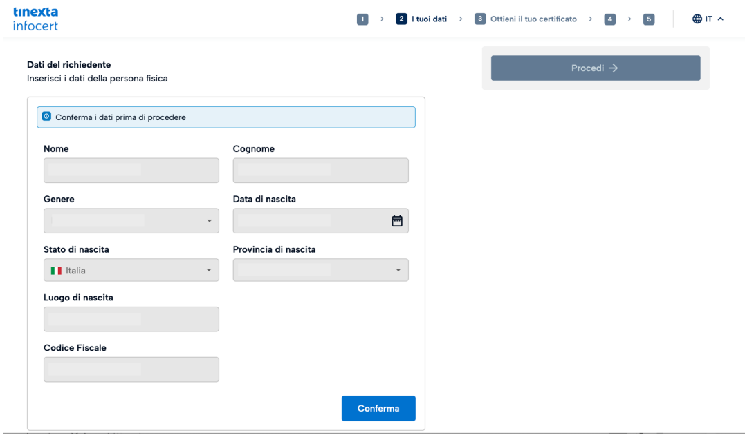Il passo successivo consiste nella conferma dei dati anagrafici.