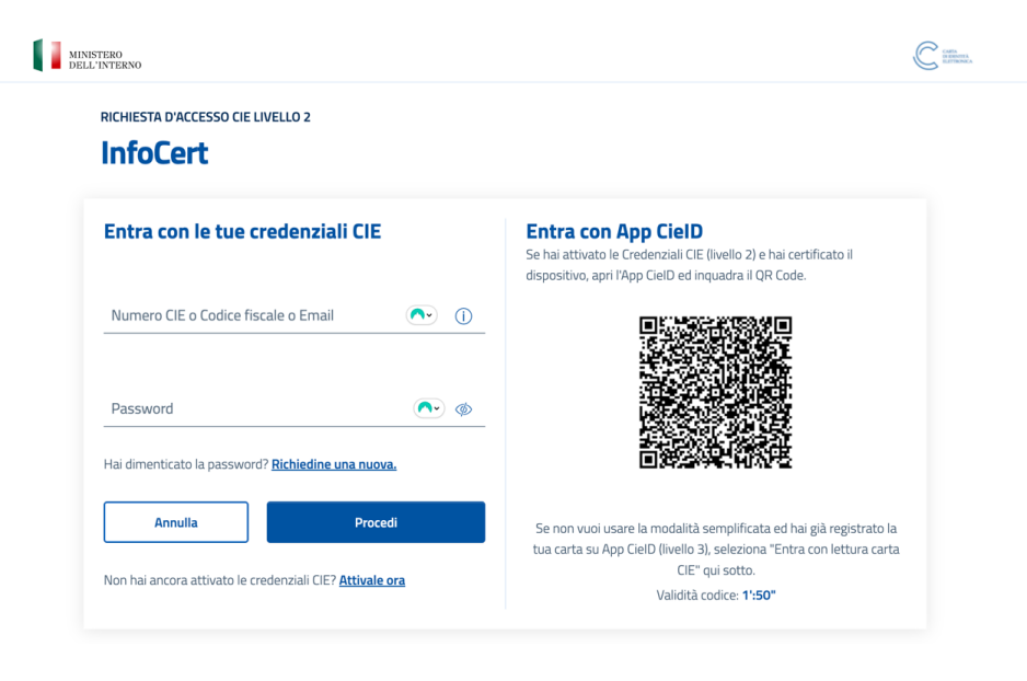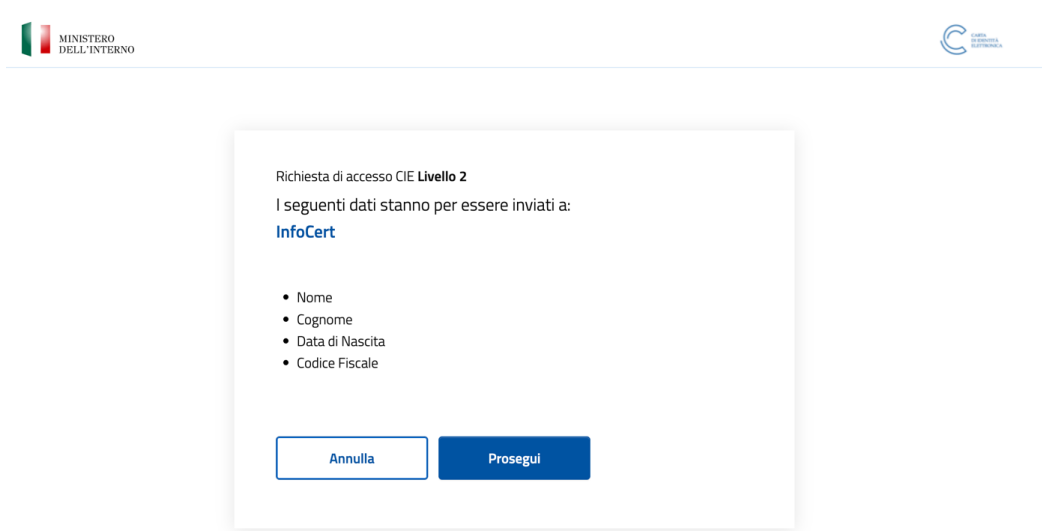 Sarà necessario procedere inserendo le proprie credenziali CIE e verrà richiesta l’autorizzazione di livello 2.