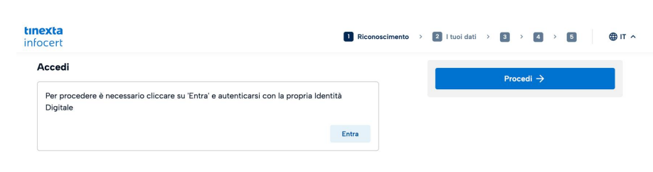 Il primo passaggio consiste nel cliccare sul pulsante Entra e autenticarsi con la propria identità digitale.