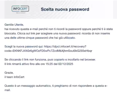 Se destinatario ultimo, quindi, il titolare della firma non ha un account Tinexta Infocert, gli verrà richiesto di impostare una nuova password tramite e-mail.