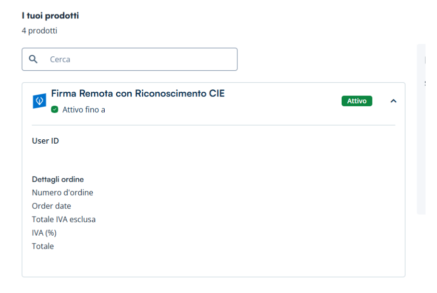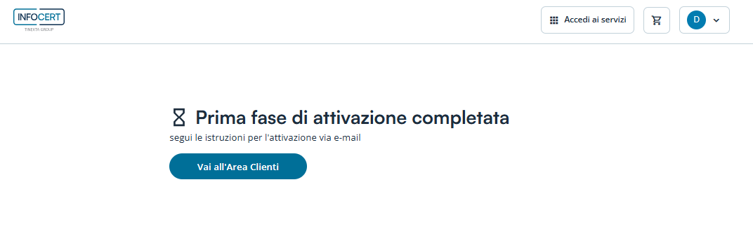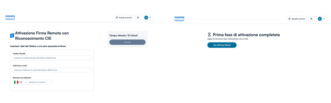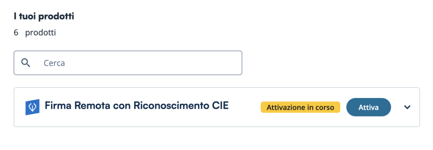 All’interno della propria Area Clienti sul sito Tinexta Infocert, sarà visibile il prodotto appena acquistato in stato “Attivazione in corso”, quindi cliccare su Attiva per arrivare al vero e proprio riconoscimento CIE.