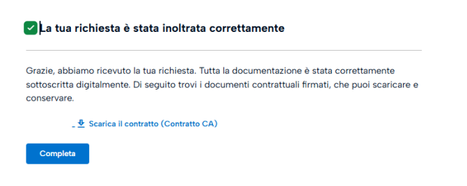 Cliccando su Conferma e poi su Procedi, il processo risulterà completato e sarà possibile scaricare il contratto.