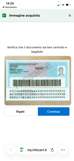 Segui le istruzioni a schermo per eseguire correttamente la foto FRONTE del documento.
