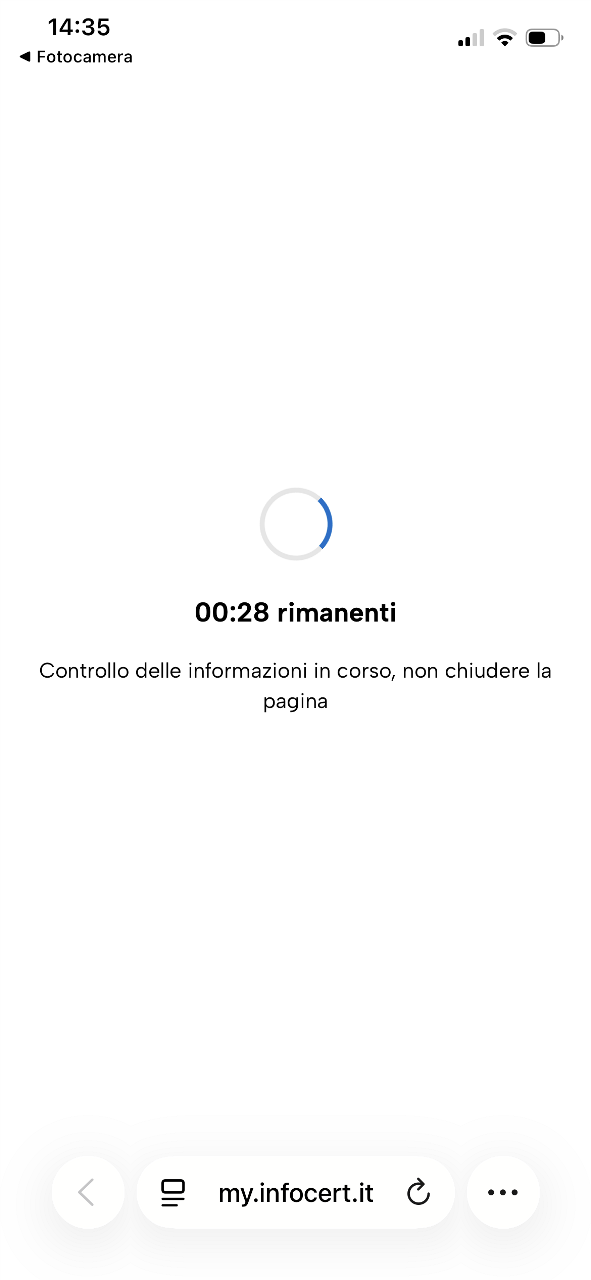 Attendi qualche secondo mentre viene effettuato il controllo delle informazioni caricate, senza chiudere la pagina.