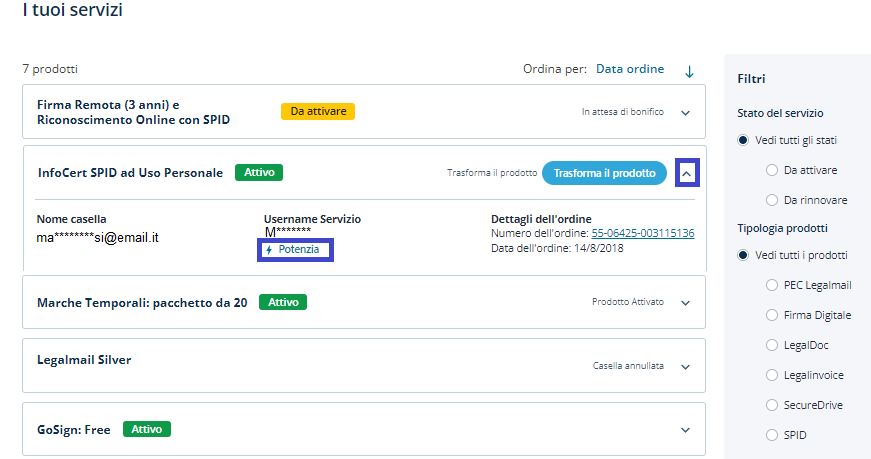 (*) Se è stato acquistato il tuo SPID senza avere l'account Negozio InfoCert o ci si è rivolti ad altri canali consultare questa GUIDA;