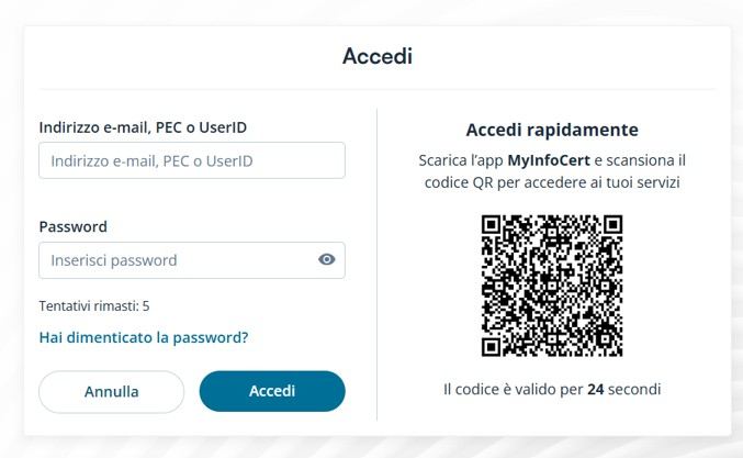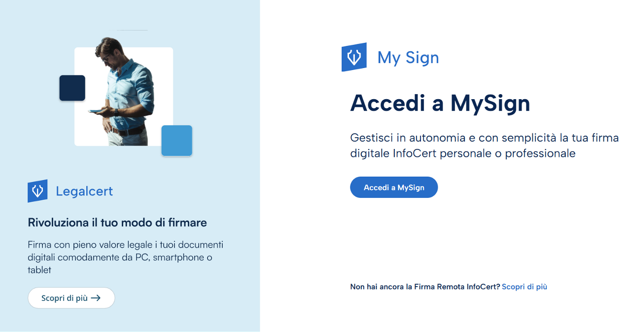 Cliccare su Accedi a My Sign per la gestione del certificato utilizzando le credenziali dell’account InfoCert.