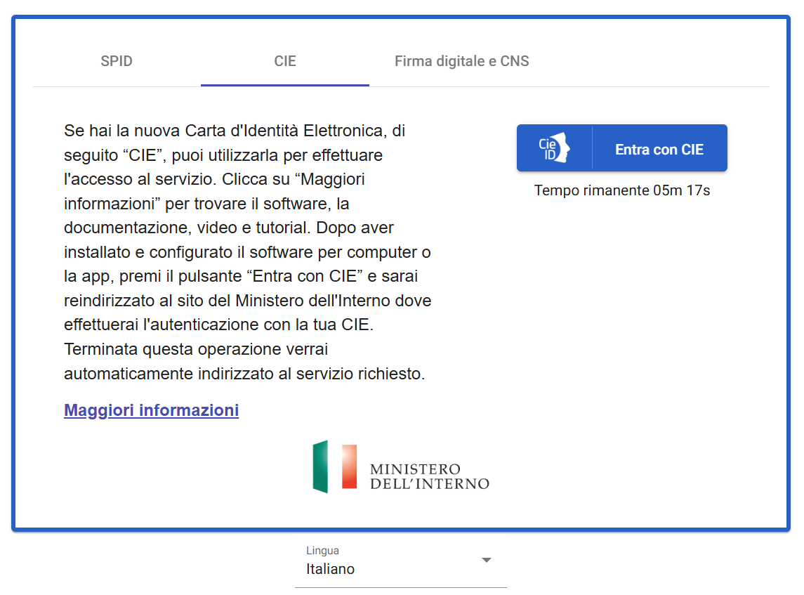 Fai clic sul pulsante "Entra con CIE" ed inserisci le tue credenziali o entra con l'app CieID.