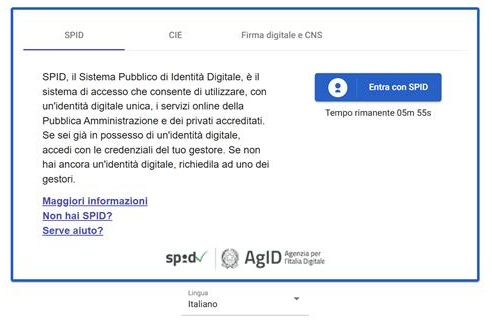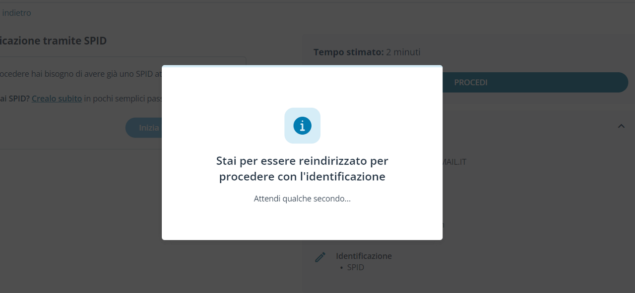 Attendi qualche secondo per essere reindirizzato sulla pagina di SPID.