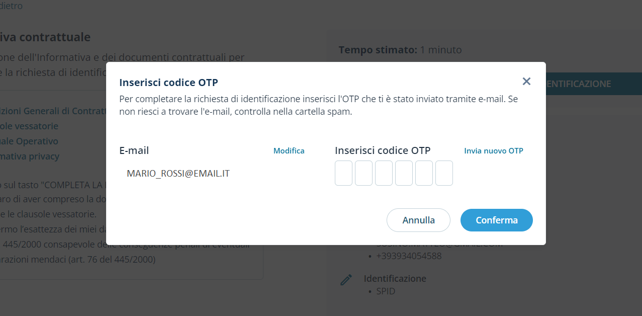 Inserito il codice OTP e cliccato sul pulsante "Conferma" il processo è concluso.