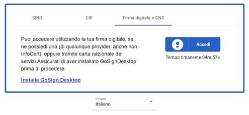 Fai clic sul pulsante "Firma Digitale o CNS" e apri GoSign. Controlla che GoSign sia abilitato alla firma web.