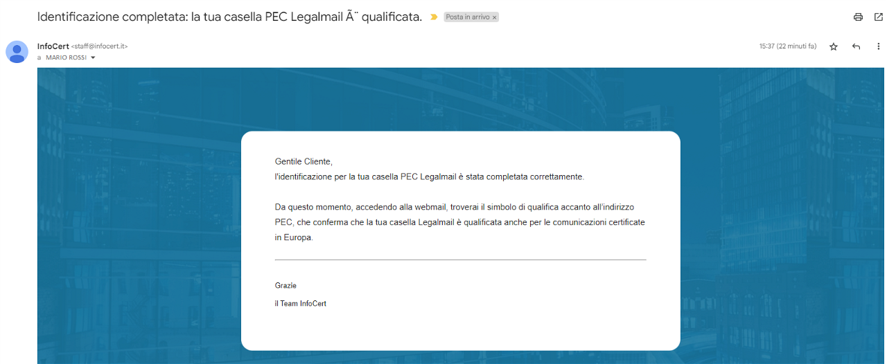 ... sia sulla casella ordinaria di posta, il messaggio di "identificazione avvenuta con successo"!