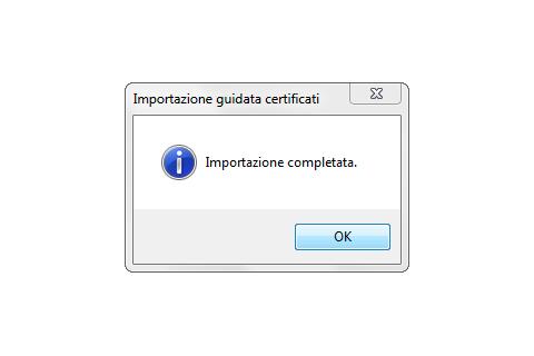 Quando il primo certificato risulta correttamente importato nelle librerie del browser si riceverà un messaggio di conferma.