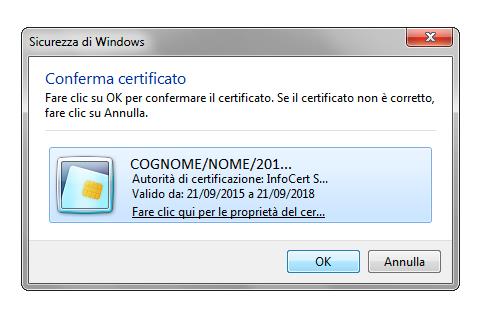 Controllare nei dati di dettaglio che si tratti del proprio certificato e procedere con un clic sul pulsante OK.