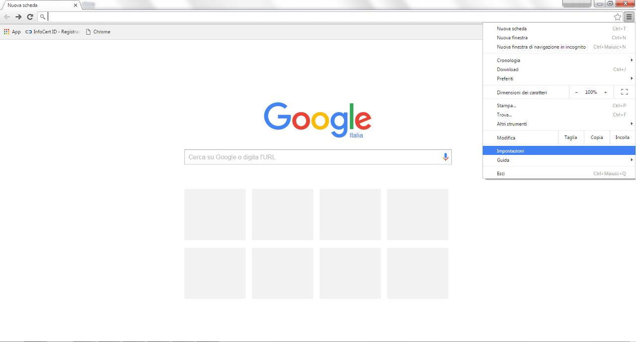 Dopo aver avviato Chrome, individuare la voce Impostazioni dal menu principale di personalizzazione del browser.