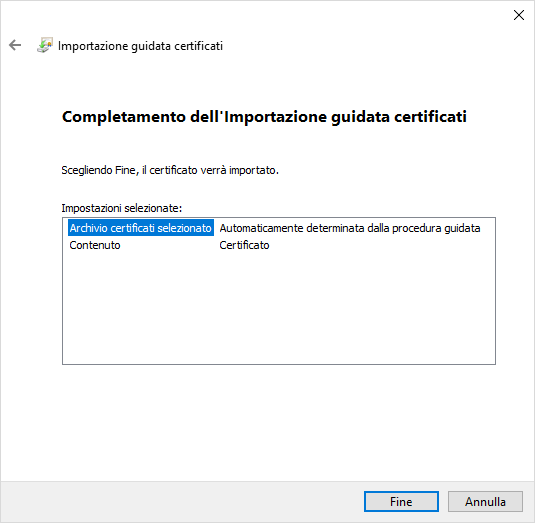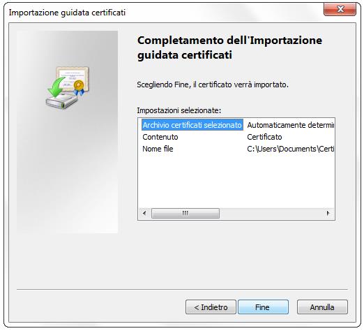 Per concludere il processo di importazione confermare con un clic sul pulsante Fine.