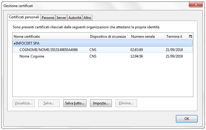 Prima di chiudere l’attività di importazione è possibile verificare che i certificati siano stati rilevati dal browser.