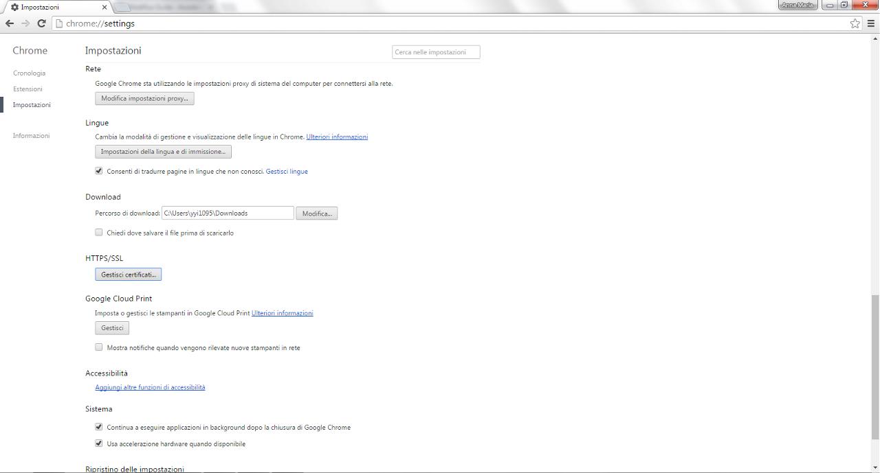 Se si utilizza Chrome, andrà ripercorsa la stessa sequenza di operazioni necessaria per arrivare al pulsante Gestisci certificati…
