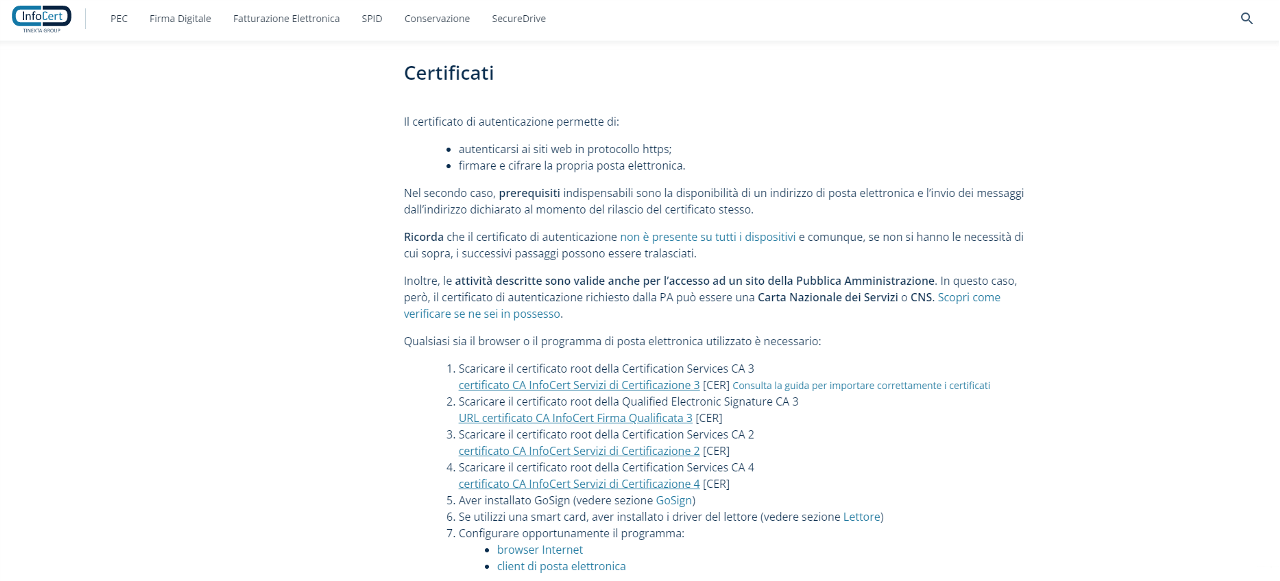 Infocert mette a disposizione i certificati di root su una pagina dedicata del sito di Firma Digitale. Non importa quale browser si stia utilizzando: l’importante è salvare entrambi i certificati sulla propria stazione di lavoro.