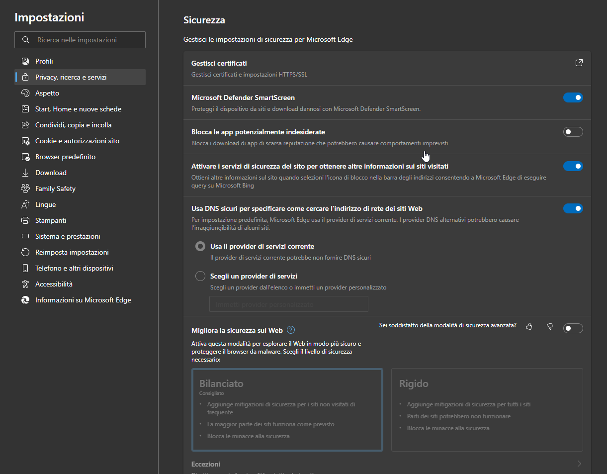 Se si utilizza Microsoft Edge andare su Impostazioni > Privacy > Sicurezza > Gestisci certificati.
