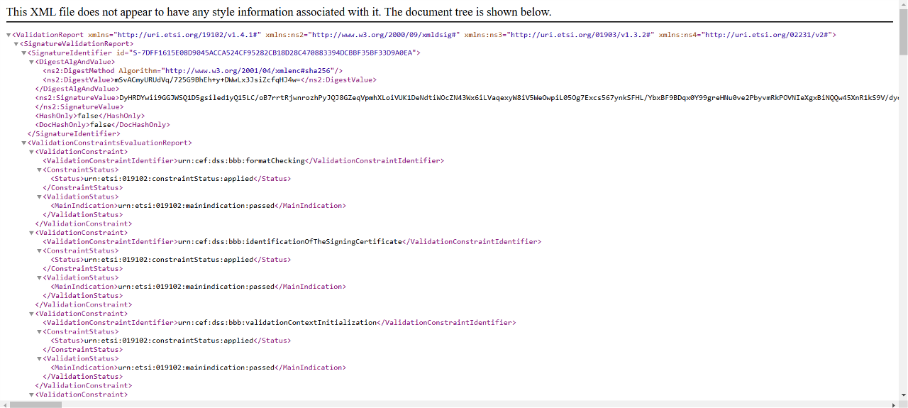 Selezionando questa opzione, il sistema apre una pagina web e mostra il report con tutti i dettagli sulla firma apposta nel documento.