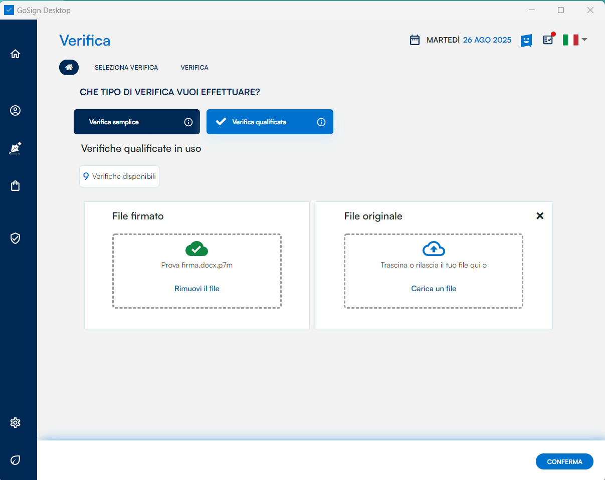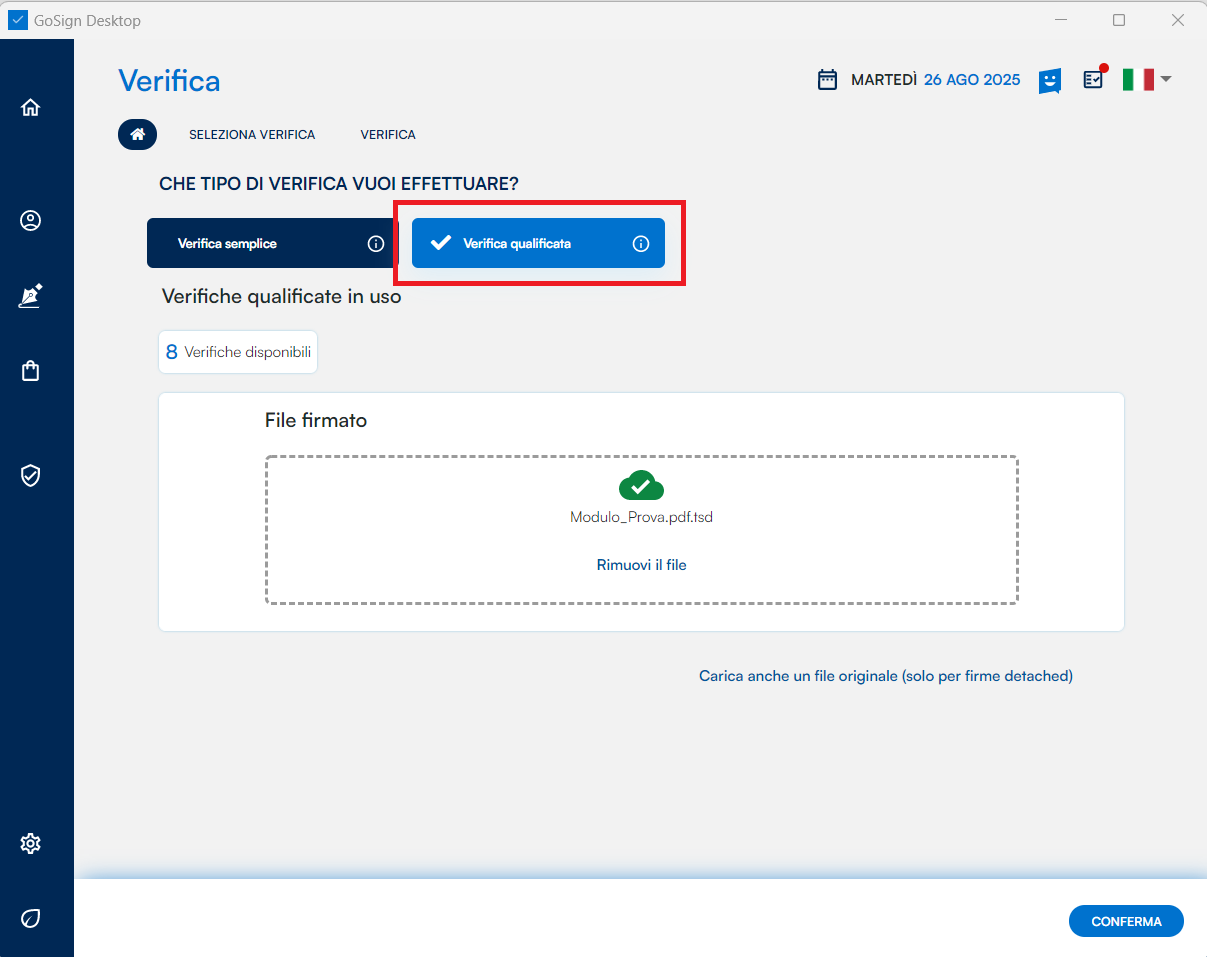 Selezionare l'opzione "Verifica qualificata".