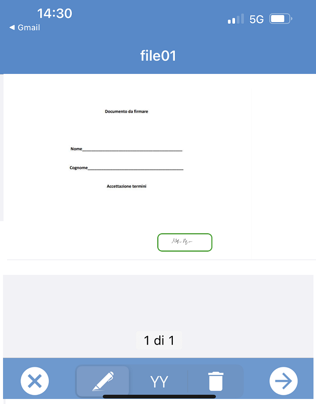 Una volta caricato il file, prima di procedere, sarà necessario scegliere dove posizionare la propria firma. Sarà sufficiente un tocco sul file visualizzato in anteprima.