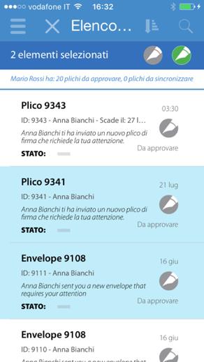 Tasto per la conferma multipla: mi dà la possibilità di portare tutte le azioni di uno o più plichi/documenti nello stato da “Da sincronizzare” con una semplice spunta sull’elenco;