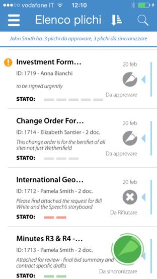 La pagina principale dell’App è composta dall’elenco dei documenti ricevuti in attesa di lavorazione.