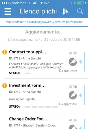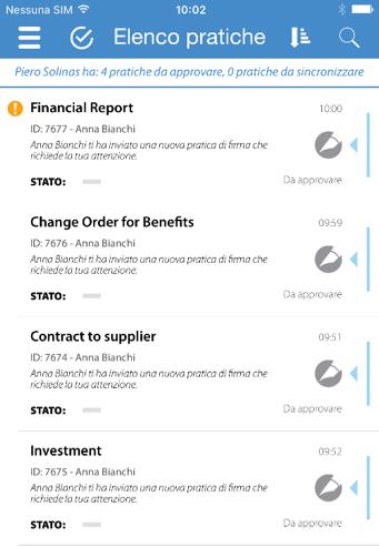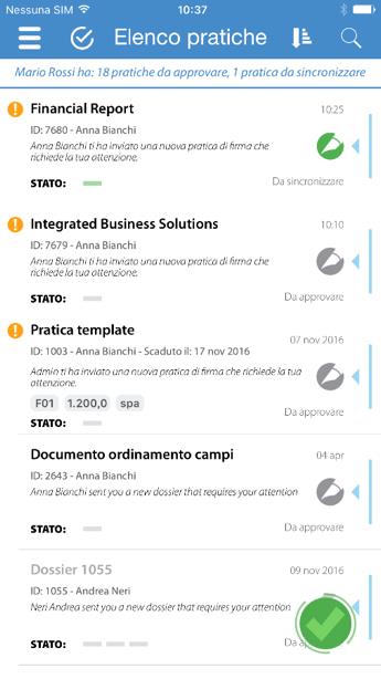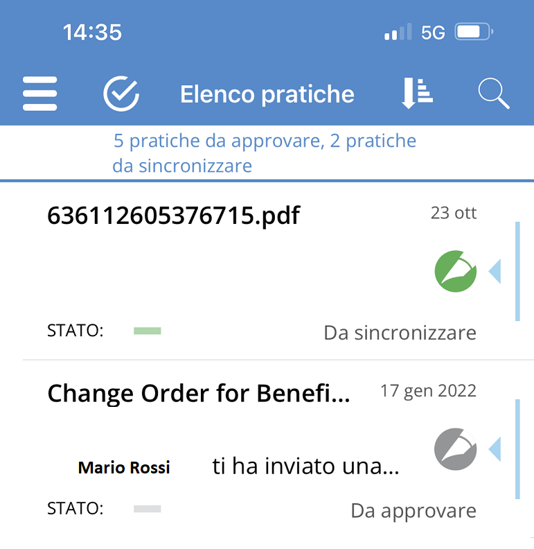La sincronizzazione senza firma avviene all’apertura dell’applicazione e/o con uno swipe verticale sull’elenco delle pratiche.