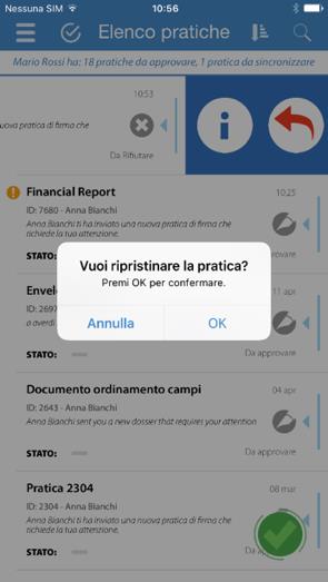 Con la gesture “swipe on left” (trascina a sinistra) su una pratica, si accede alle seguenti funzioni: