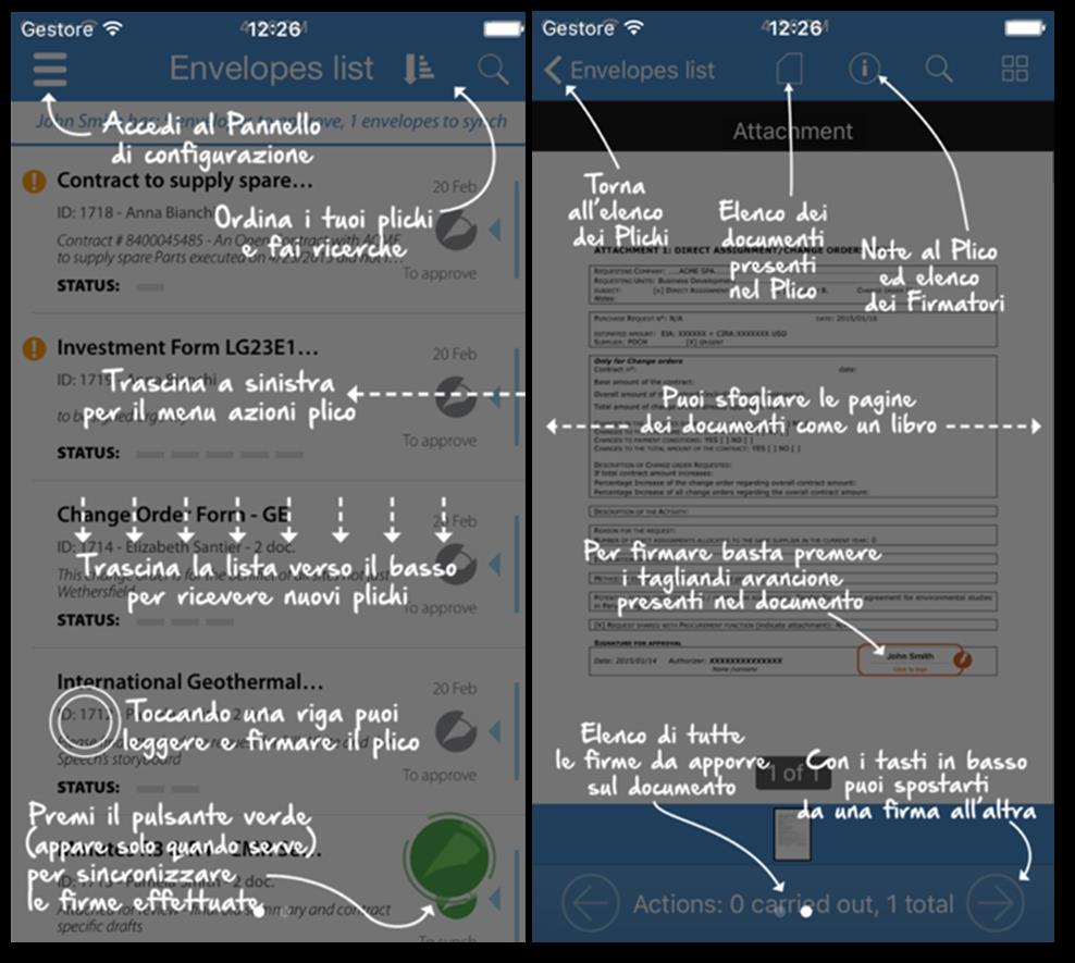 Le azioni possibili sono diverse. Oltre alla firma, sono presenti: